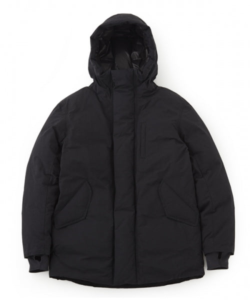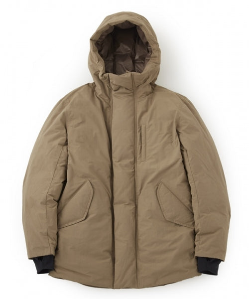 A down jacket made from water-repellent, high-density taffeta fabric.