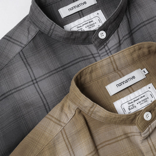 OFFICER STAND COLLAR L/S SHIRT COTTON TWILL OMBRE CHECK by Rafu