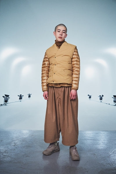 横山大介氏。 新潟県出身。大学の同級生である荒木克記氏とのデザインユニットWONDER WORKER GUERRILLA BAND名義で、2003年に<Sasquatchfabrix.>をスタート。2013年の秋冬コレクションより横山氏1人での活動に。ウェアデザインだけでなく、舞台衣装やプロダクトデザインなども手がけ、その才能をいかんなく発揮する。