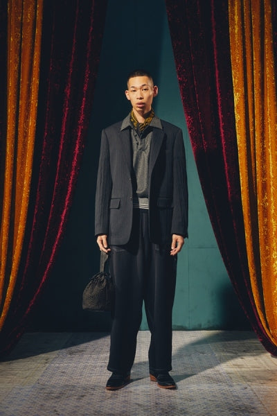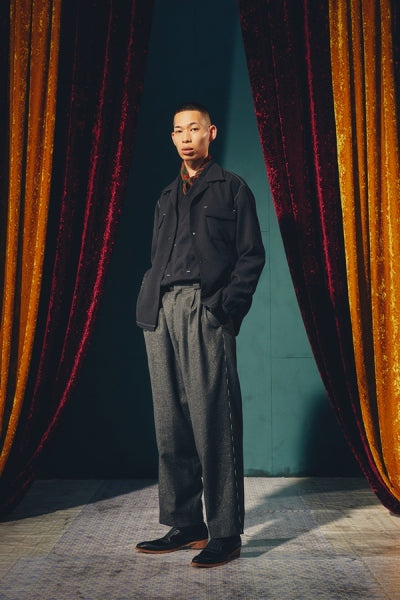 Mr. Daisuke Yokoyama. Born in Niigata Prefecture, he started Sasquatchfabrix. in 2003 under the design unit name WONDER WORKER GUERRILLA BAND with Katsuki Araki, a classmate from university. From the Fall/Winter 2013 collection, he has been working independently. He not only designs clothing but also stage costumes and product designs, fully showcasing his talent.
