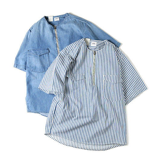 OPEN COLLAR SHIRTS S/S ORGANIC COTTON CHAMBRAY