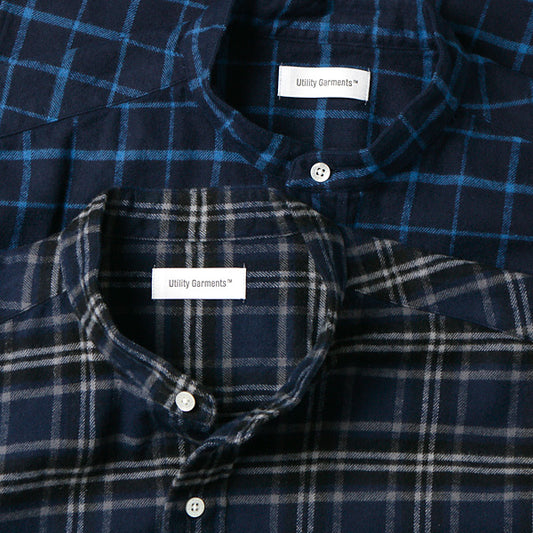 CLASSIC BAND COLLAR INDIGO PLAID FLANNEL