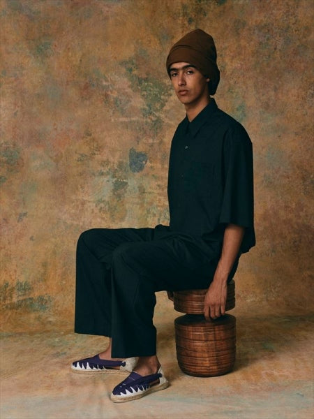 • COTTON LINEN S/S OPEN COLLAR SHIRT