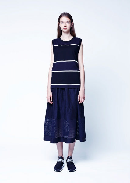 CONTRASTED BORDER NO SLEEVE T-SHIRT