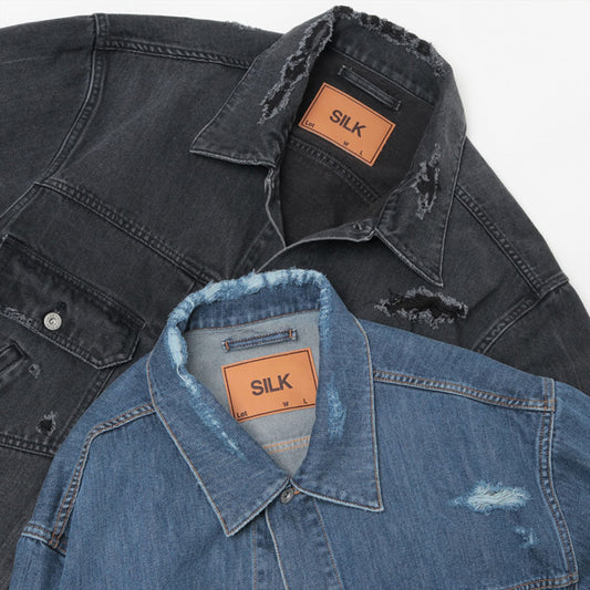 Vendor:doubletDAMAGED SILK DENIM JACKETRegular price ¥63,800 (tax included)Regular priceUnit price / perRegular priceSale price ¥63,800 (tax included)Sold out