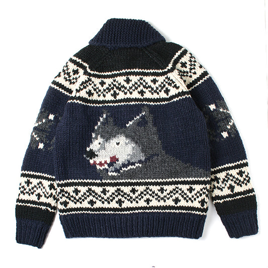 Thick wool roving hand knitted Cowichan wolf pattern N001