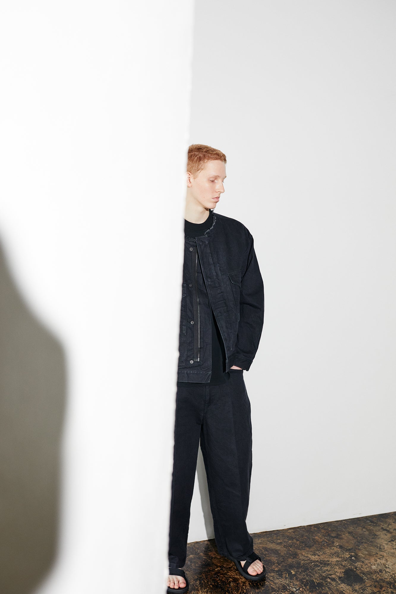 This original denim fabric is made using slightly uneven yarn and extra-long staple cotton, giving it a strong fuzziness on the surface and a unique softness. It has been washed, leaving it a little stiff so that it will gradually soften and become more comfortable. There may be slight individual differences in size, but it will hardly shrink with normal washing.