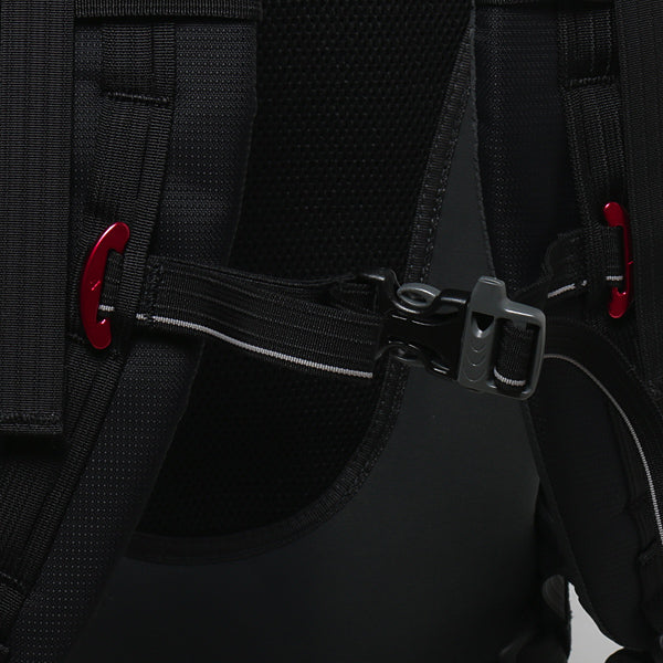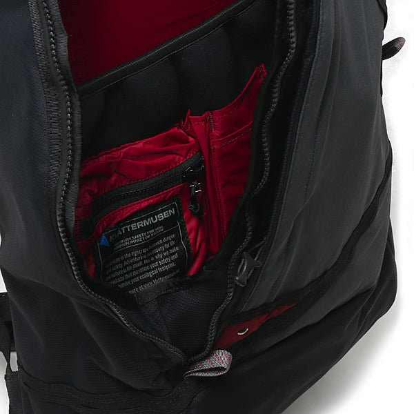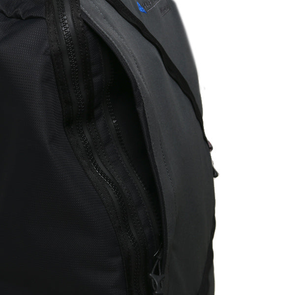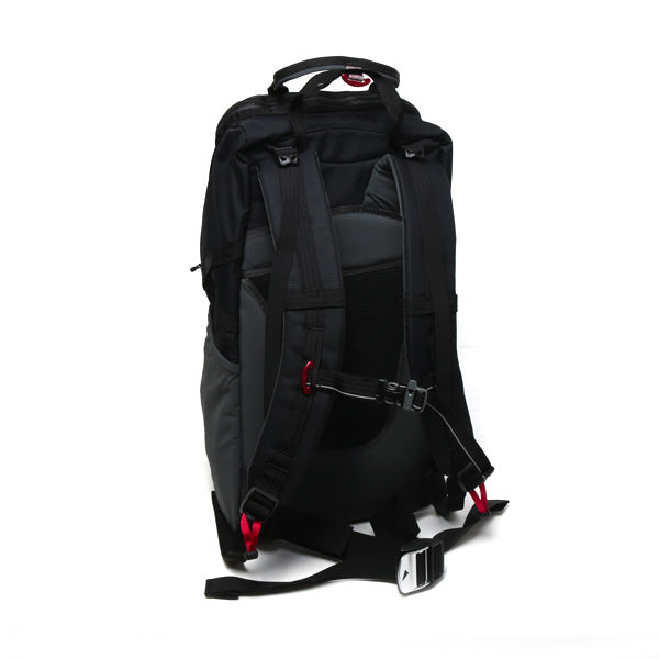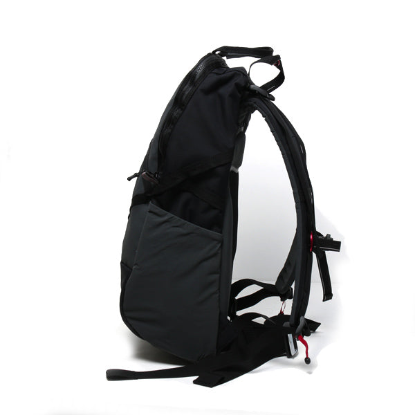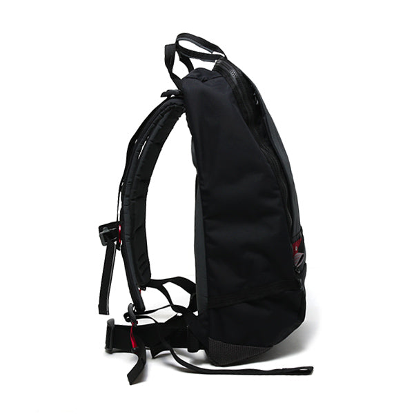 A small backpack with a large opening and an inner storm flap. Equipped with side pockets, webbing cords, and reflectors. Equipped with an inner pocket and organizer for a laptop. Convenient for use around town. Considering that the back of the helmet hits the inside of the upper part of the backpack when climbing or cycling, we have increased the number of parts and created a recess with a gusset.