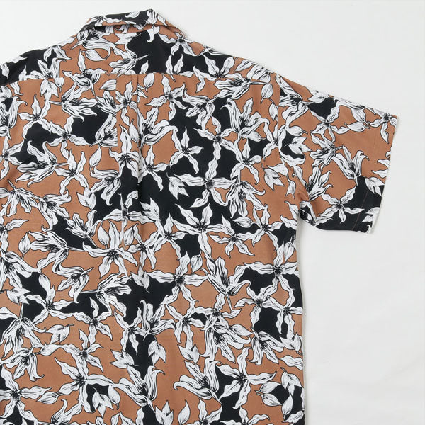 This is a short-sleeved shirt with an original pattern made from filament rayon fabric.