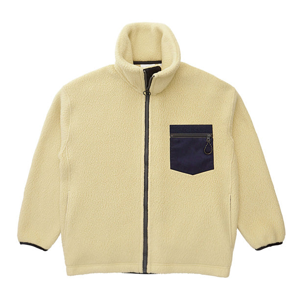 The front zip design features a large collar reminiscent of a B-3 jacket.