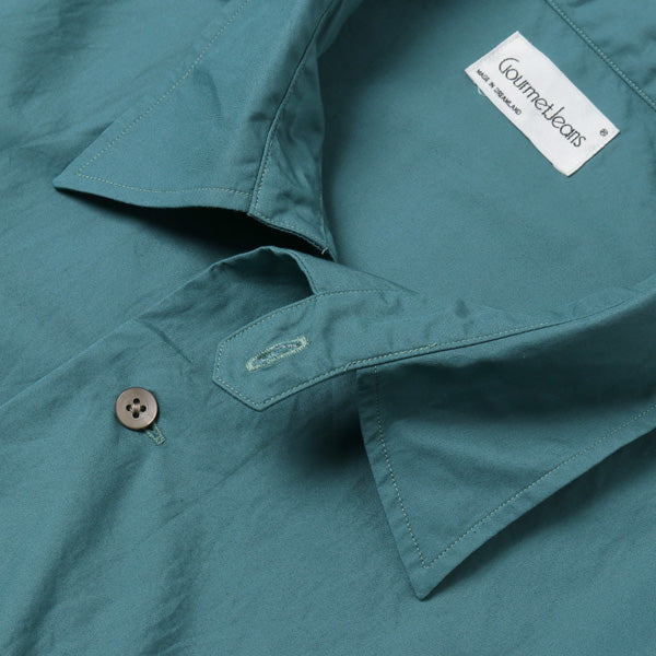 If you button it all the way up, the collar will overlap, and if you leave the top one or two buttons open, it will look like an open-collar shirt.