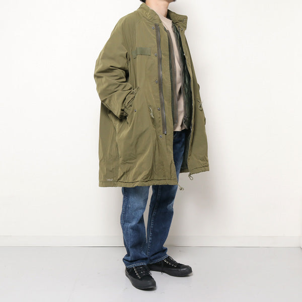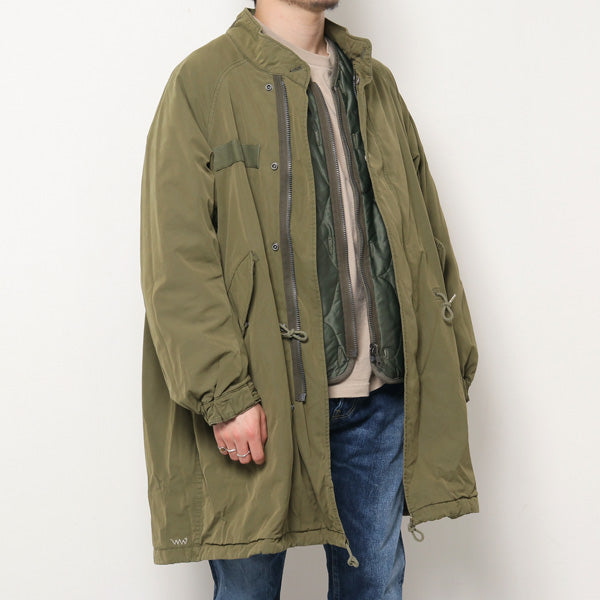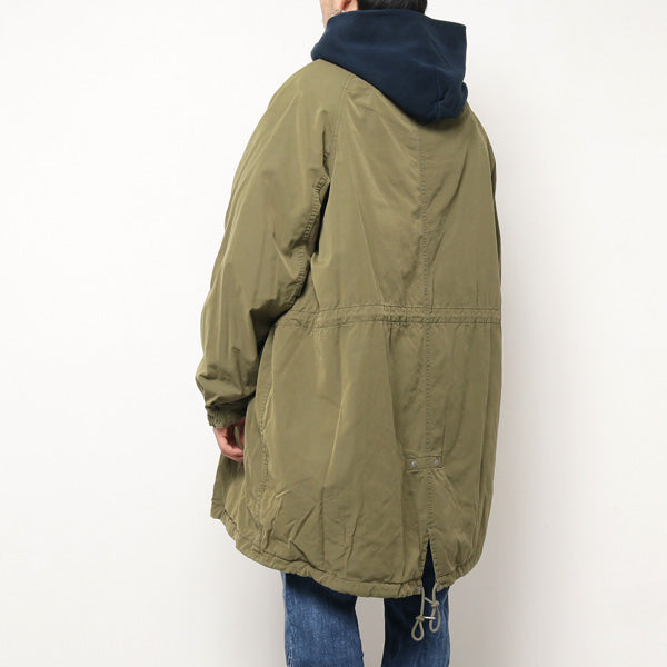 A fishtail coat made from specially processed cotton and nylon woven at a high density. <br>Distressed finish <br>Original snap button <br>Swiss riri® zipper