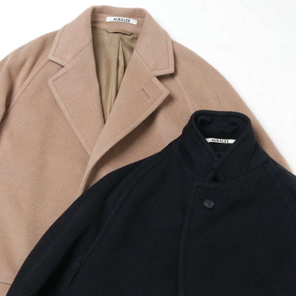 The material is made of a soft blend of fine wool and Mongolian cashmere, woven into a mosser-finished yarn. It has the softness and slippery feel that is unique to cashmere, and is thick yet has a beautiful drape.