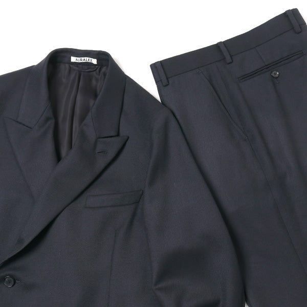 The warp threads are made of high-quality wool and the weft threads are made of fine wool kid mohair, resulting in a twill material with a distinct twill weave.