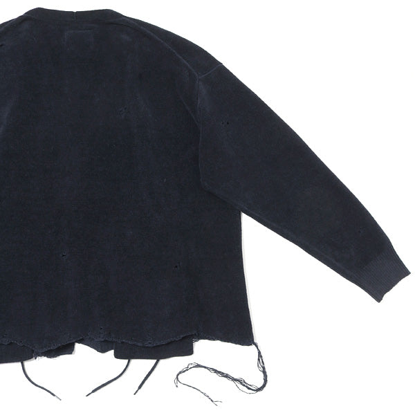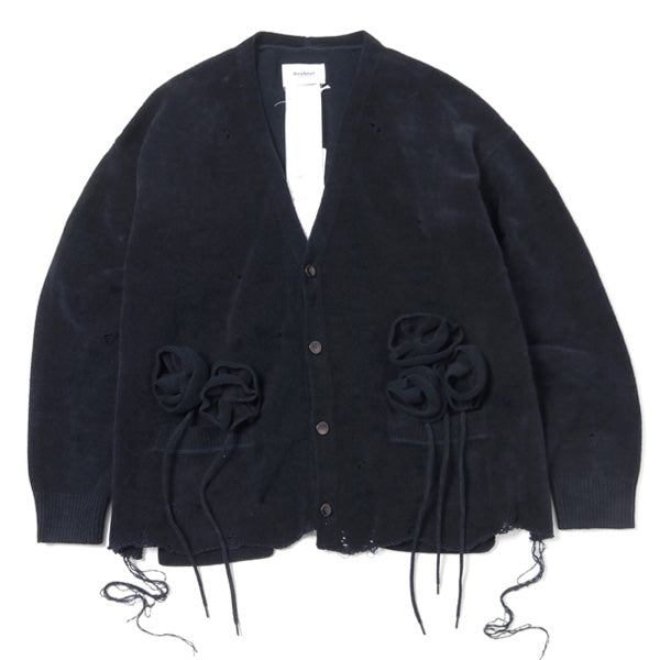 It has a mixed look with an elegant velvet-like brushed texture and a distressed look that contrasts with the corsage.