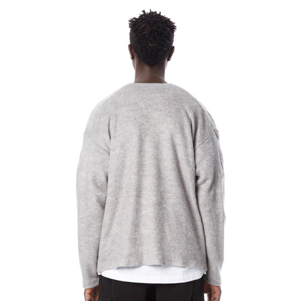 The fabric is made of soft and fluffy acrylic/wool blend yarn.