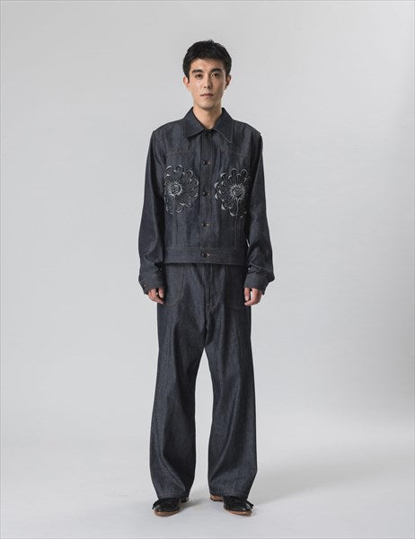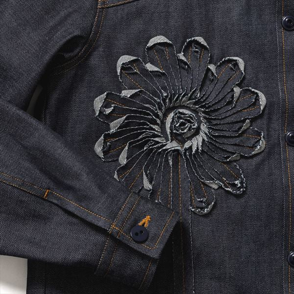This denim jacket is made using 10oz slub yarn rigid denim.