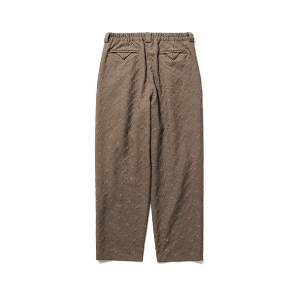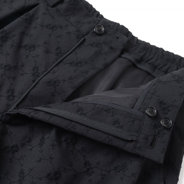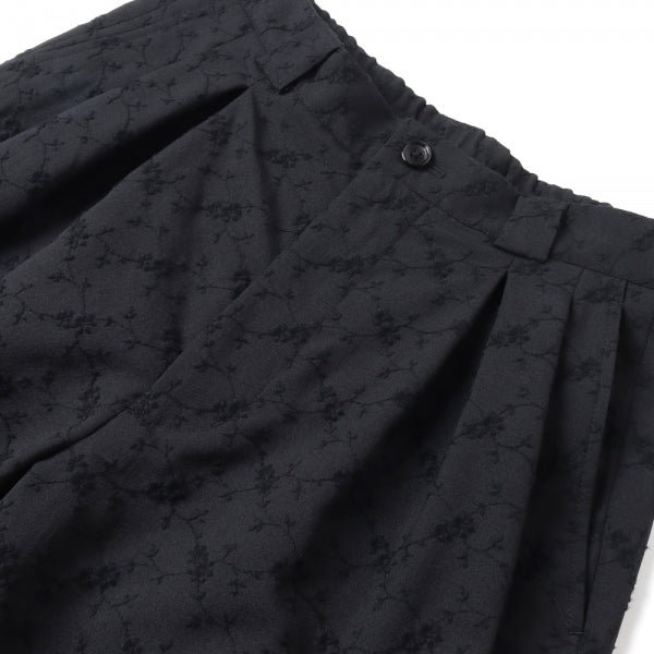 These are tapered silhouette pants with a fully embroidered floral pattern.