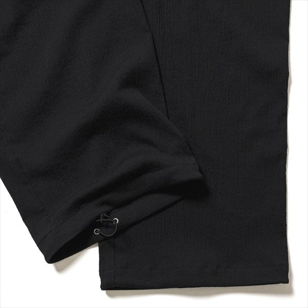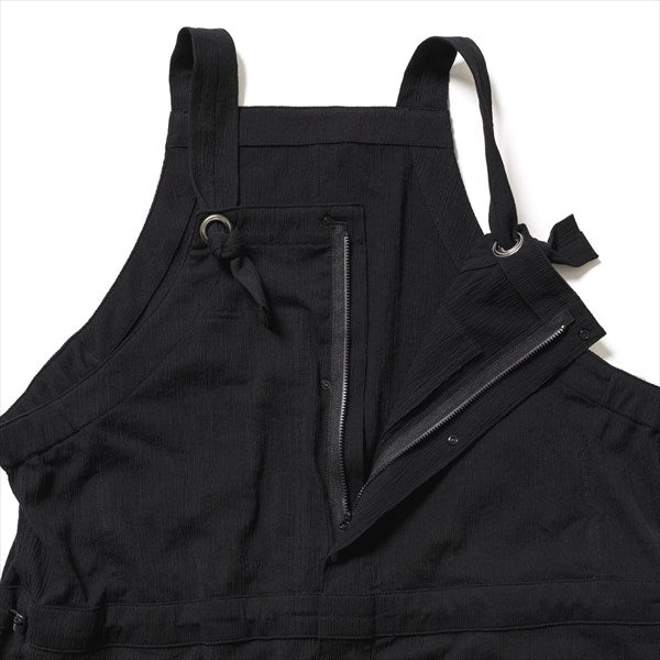 These are crepe paper overalls made of cotton-polyester material with vertical wrinkles.