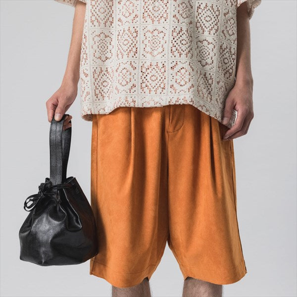 This is a classic drawstring bag made from lizard embossed cow leather.