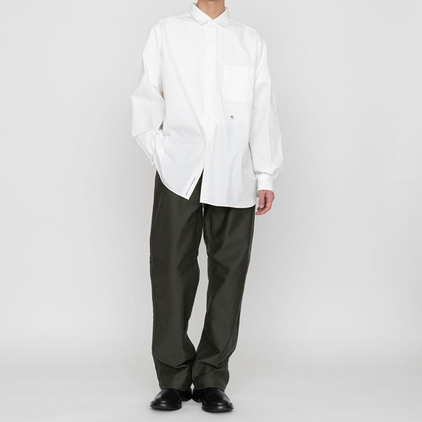 -A regular collar shirt made of broadcloth material with covering core yarn, which is a polyester core wrapped with cotton thread.