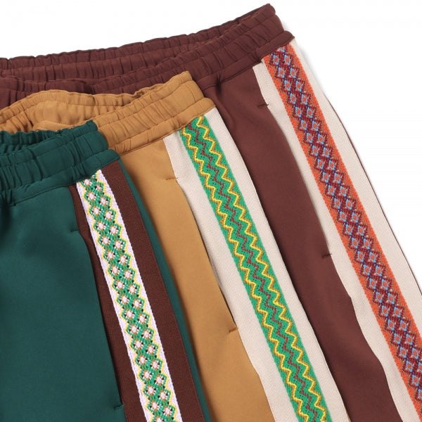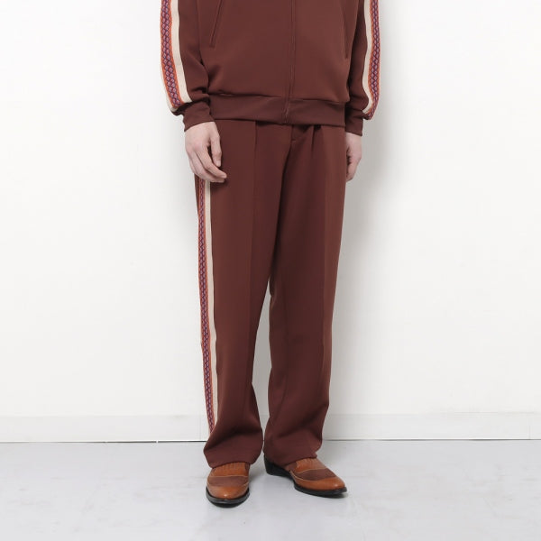 Straight silhouette track pants made from glossy, highly stretchable jersey material.
