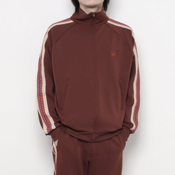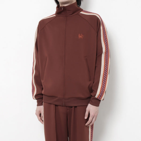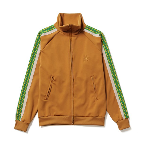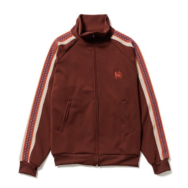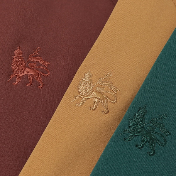 It features lace tape embroidery on the sleeves and lion embroidery on the chest.