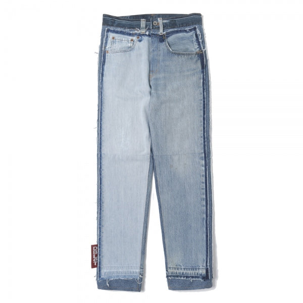 The front of the garment is made from a slacks pattern with the legs visible closed, while the back is made from a jeans pattern with the legs visible open, taking advantage of the characteristics of each. Just as there are as many different personalities as there are people, each pair of denim is different. We are waiting for you to find your favorite.