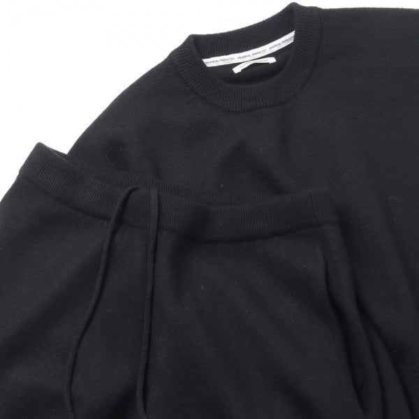 Knit pants made from 7 gauge jersey fabric, made from unshrunk merino wool that has been shrunk.