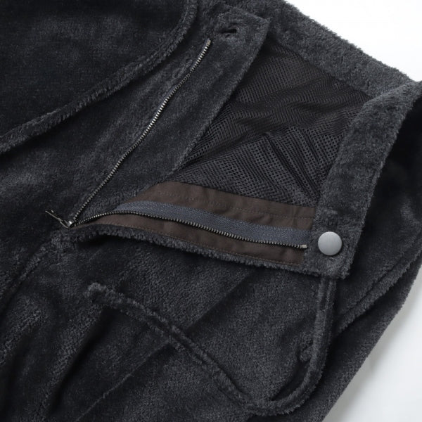 These easy pants are loose from the waist to the hips and have a slight taper. They are made of cotton pile with long pile, smooth surface, and cut pile with a smooth feel and a subtle sheen. Mesh is used for the lining.