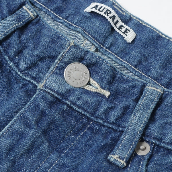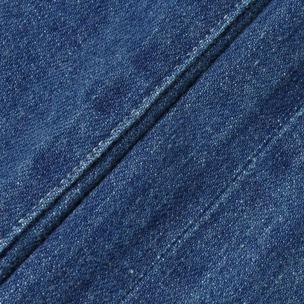 This selvedge denim is woven slowly over time on a shuttle loom using rope-dyed staple nep yarn for the warp and high-quality Supima cotton for the weft.