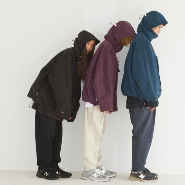 The hood and hem can be adjusted with drawstrings, and there is ventilation on the inside of the hem.