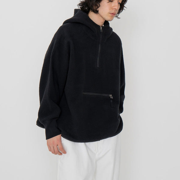 An anorak parka made with recycled polyester on the outside and cotton on the inside.