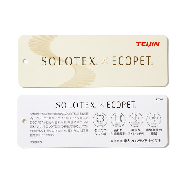 The material used is SOLOTEX, which has a supple texture, giving it a dry cotton-like feel and light stretchiness.