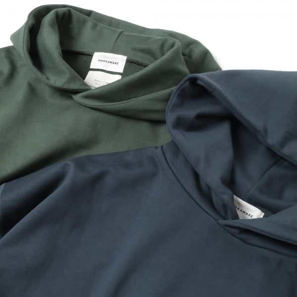 MARKAWARE's classic big silhouette huge parka. The silhouette is generously roomy in both the body and sleeve width, and the tightly knit fabric gives it a three-dimensional look, making it a piece with a strong presence.