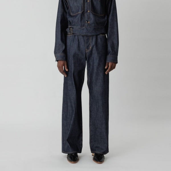 These are 5-pocket flare pants made from 10oz uneven yarn denim.