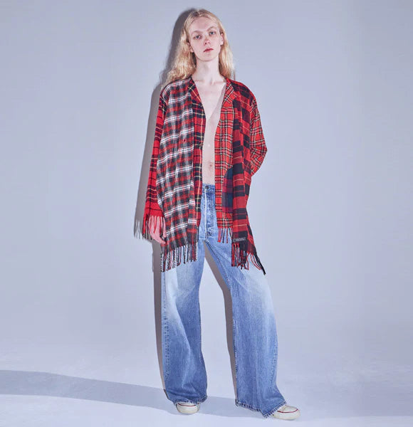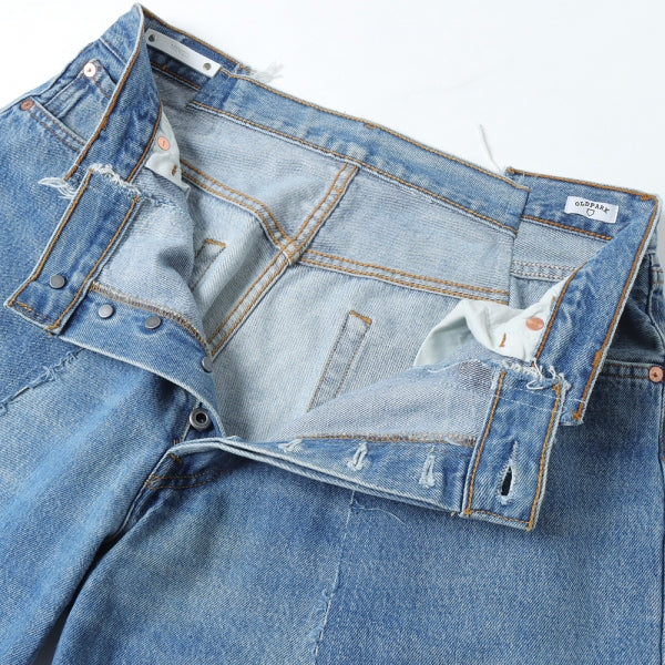 - OLDPARK x MINEDENIM collaboration limited edition baggy silhouette jeans made by disassembling and reconstructing two pairs of vintage jeans with different fading