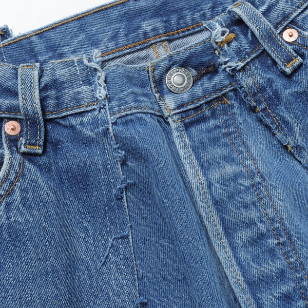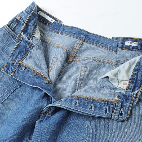 - OLDPARK x MINEDENIM collaboration limited edition baggy silhouette jeans made by disassembling and reconstructing two pairs of vintage jeans with different fading