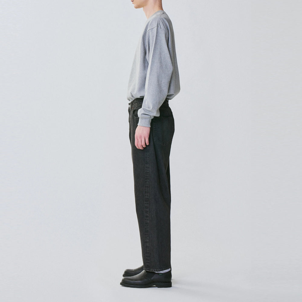 INDIGO is a 13.5oz selvedge denim made from high-quality San Joaquin cotton, a long-established cotton producing region in the United States, using a special spinning method and dyed with pure indigo while mixing in natural neps. BLACK is blended with top gray yarn.