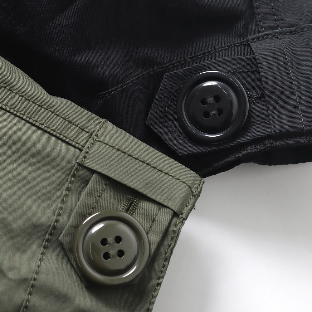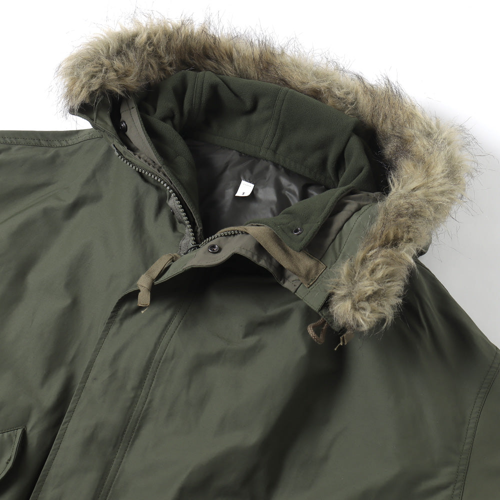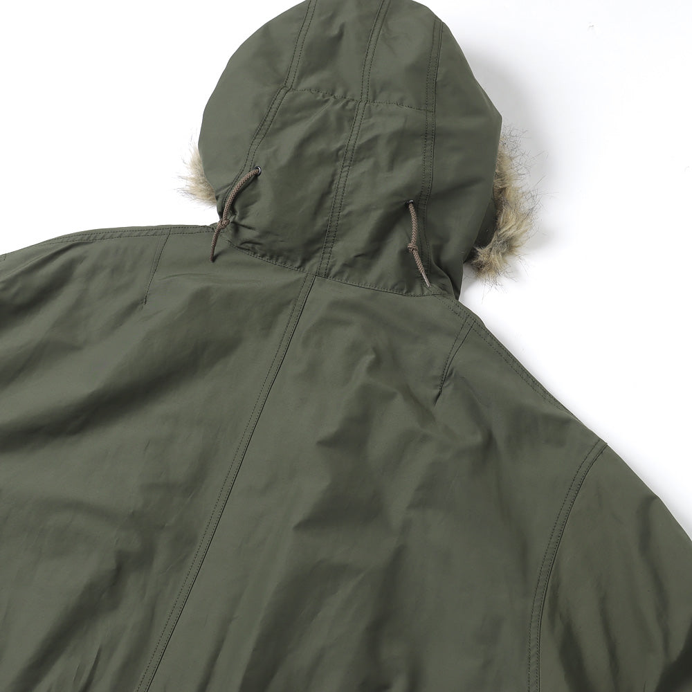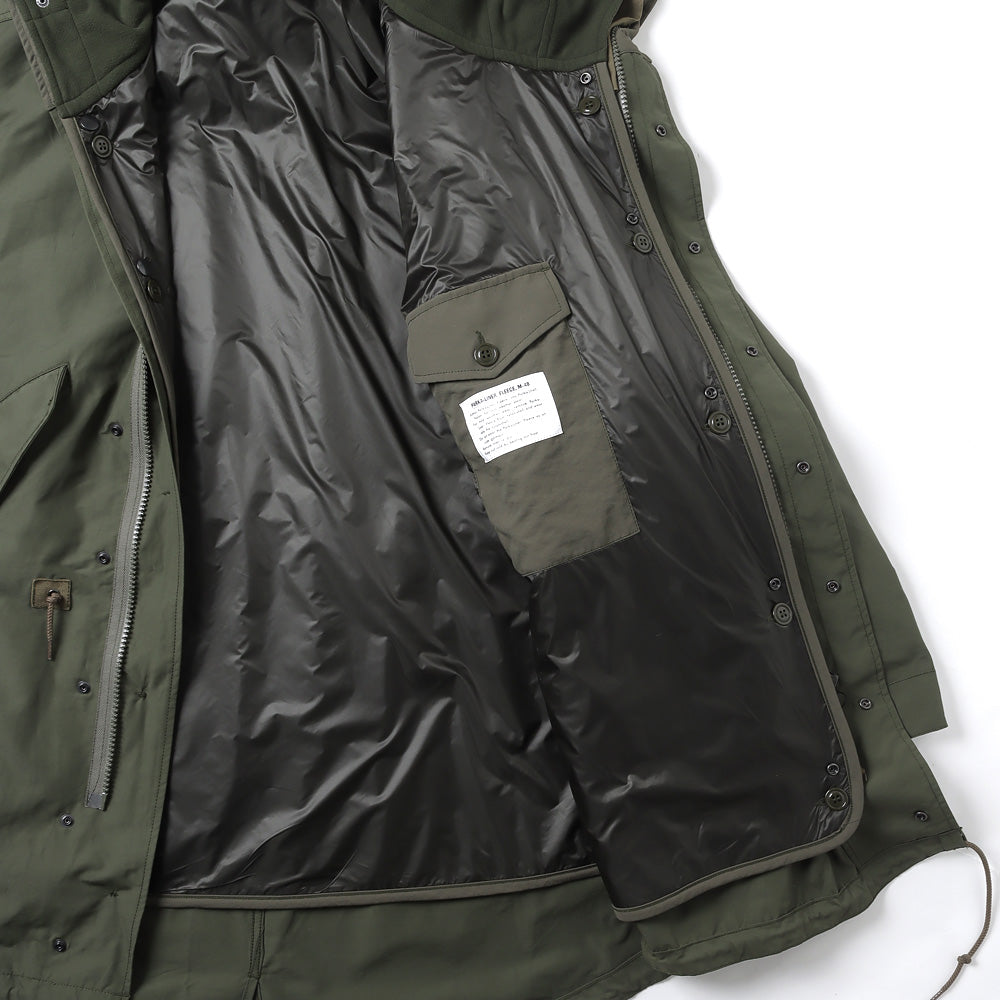 - It follows the characteristic details of the M48, such as roomy armholes, voluminous sleeves, and a cigarette pocket on the left sleeve. A Vislon zipper is used on the front. Warm and soft hand pockets with peach material on the inside. The fake fur on the hood is removable. The liner has been changed to a dot button design that makes it easier to put on and take off the shell, and can be worn alone or reversibly. A slightly thin cotton nylon is used on the sides of the liner to reduce bulk. Military specifications are placed on the inside right pocket of the shell and the chest pocket of the liner.