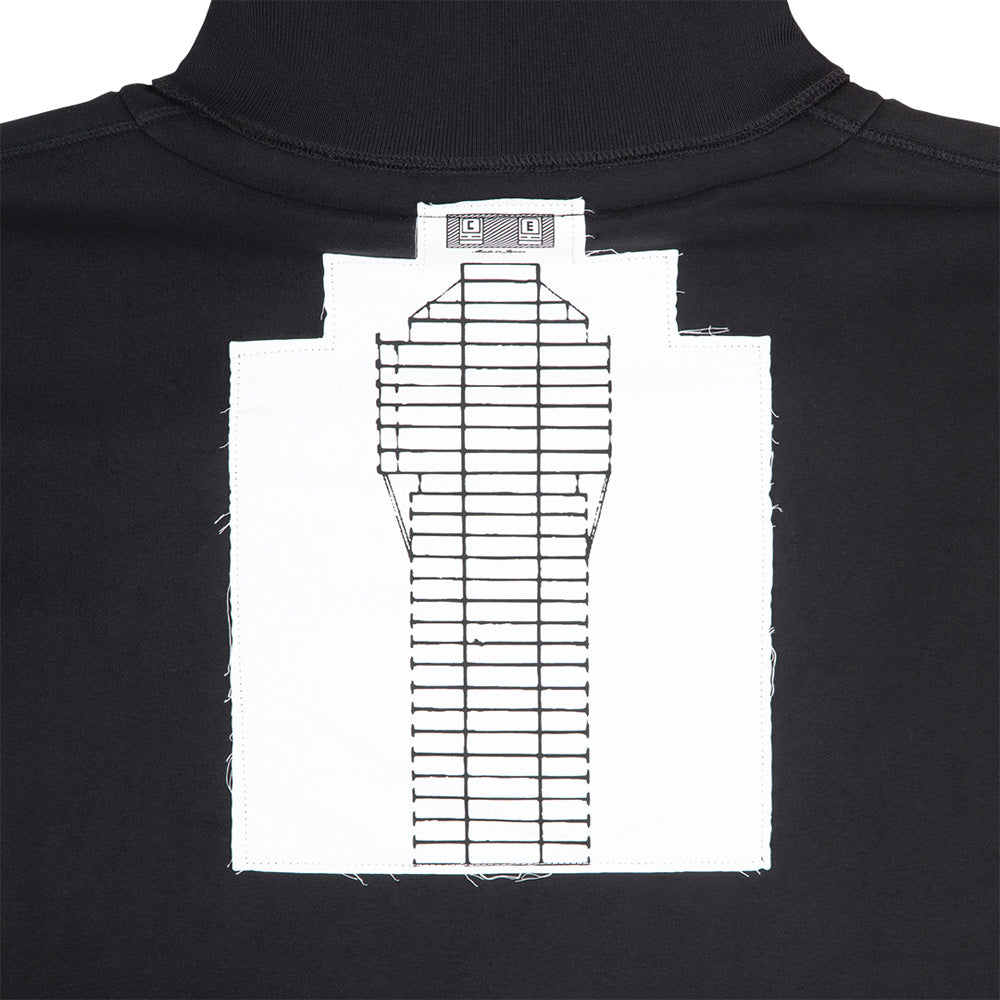 Fabric patch on the back of the body. Silicone patch on the upper left sleeve.