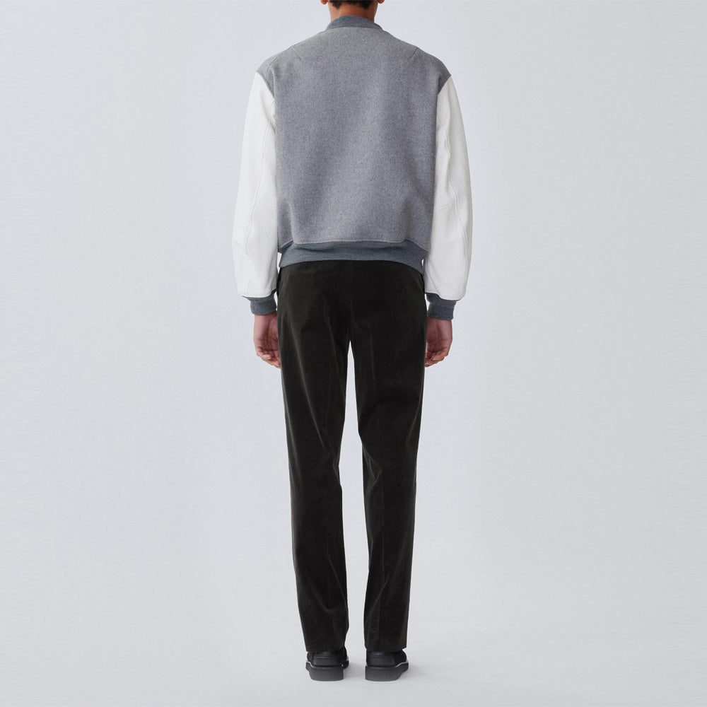 This elegant double-woven Melton has a deep color due to the cotton dyeing process, and it also has sufficient softness, luster, and high-quality suppleness.