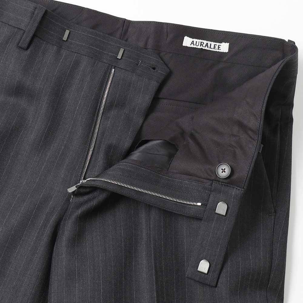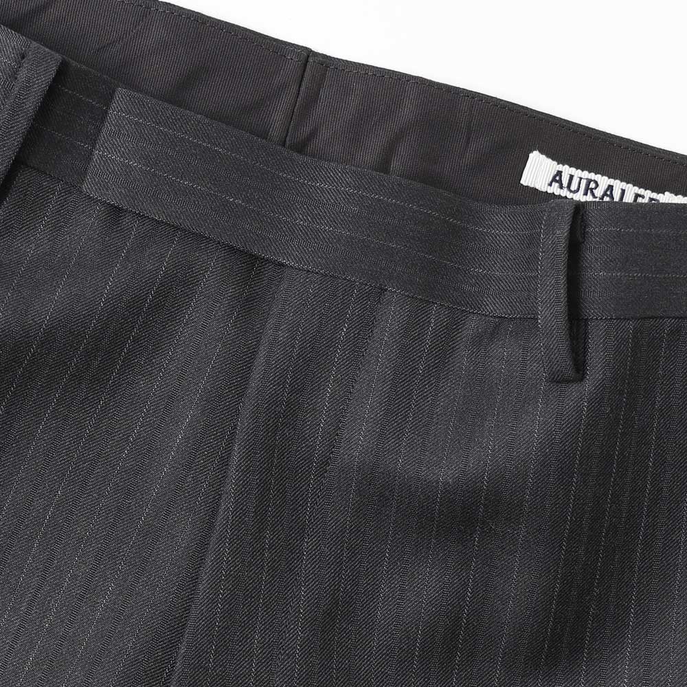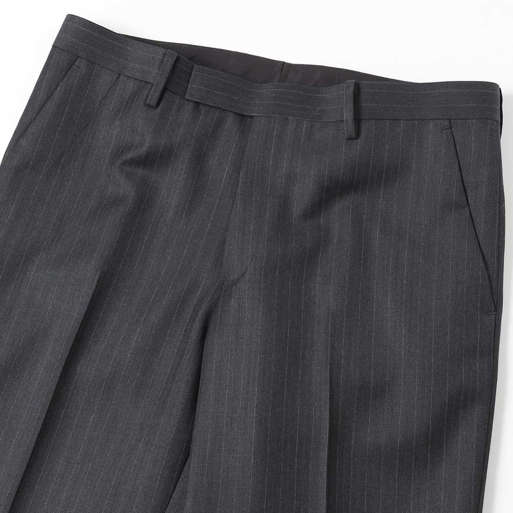 This luxurious material uses Super130's super extra fine merino for the warp and worsted yarn made from British Blue Face Luster wool for the weft.