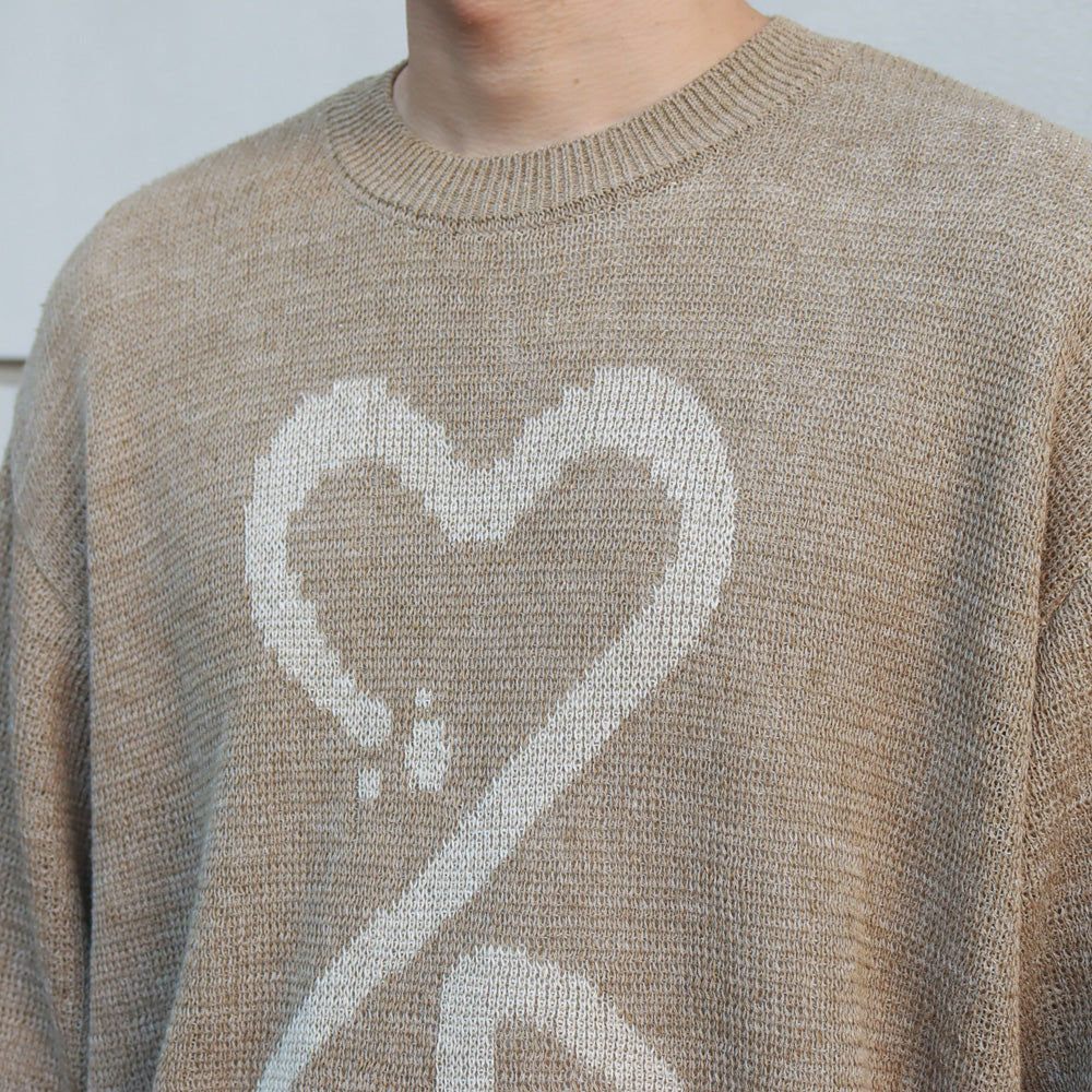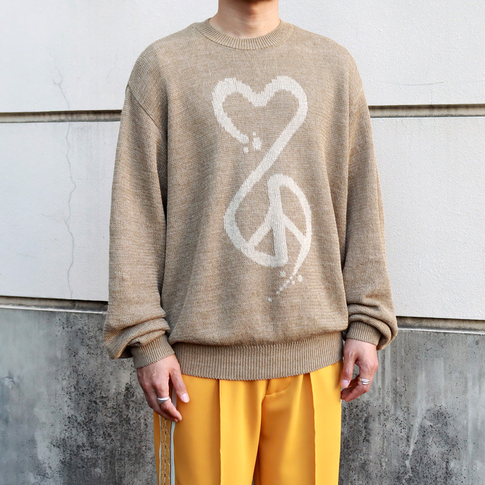 This is a double jacquard crew neck knit with a "LOVE & PEACE" pattern created by pixel designer "ten_do_ten".
