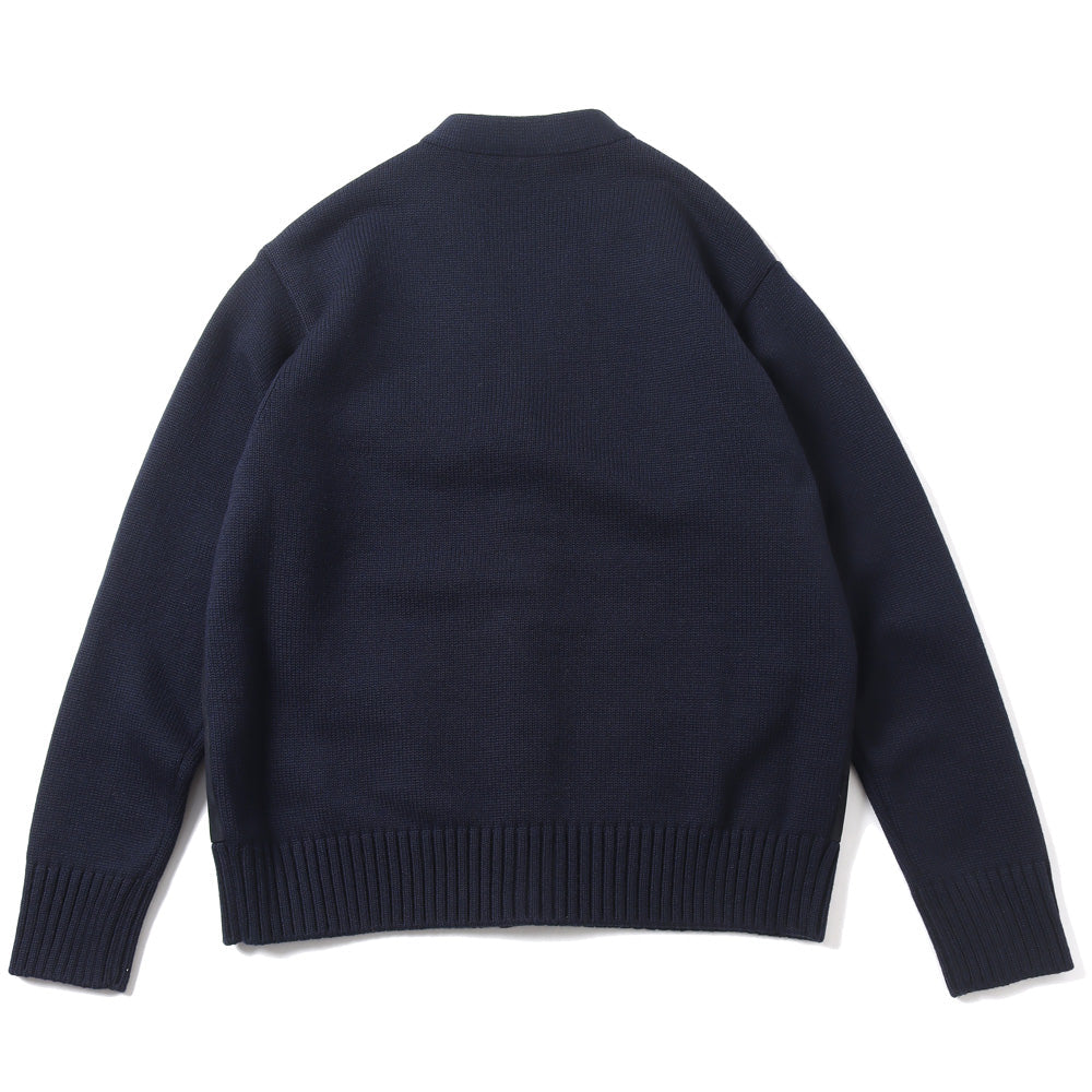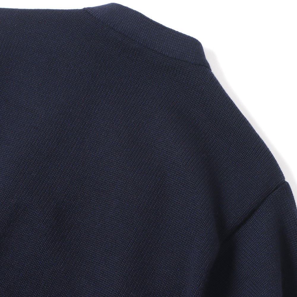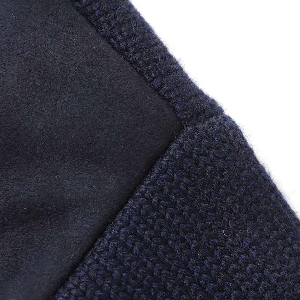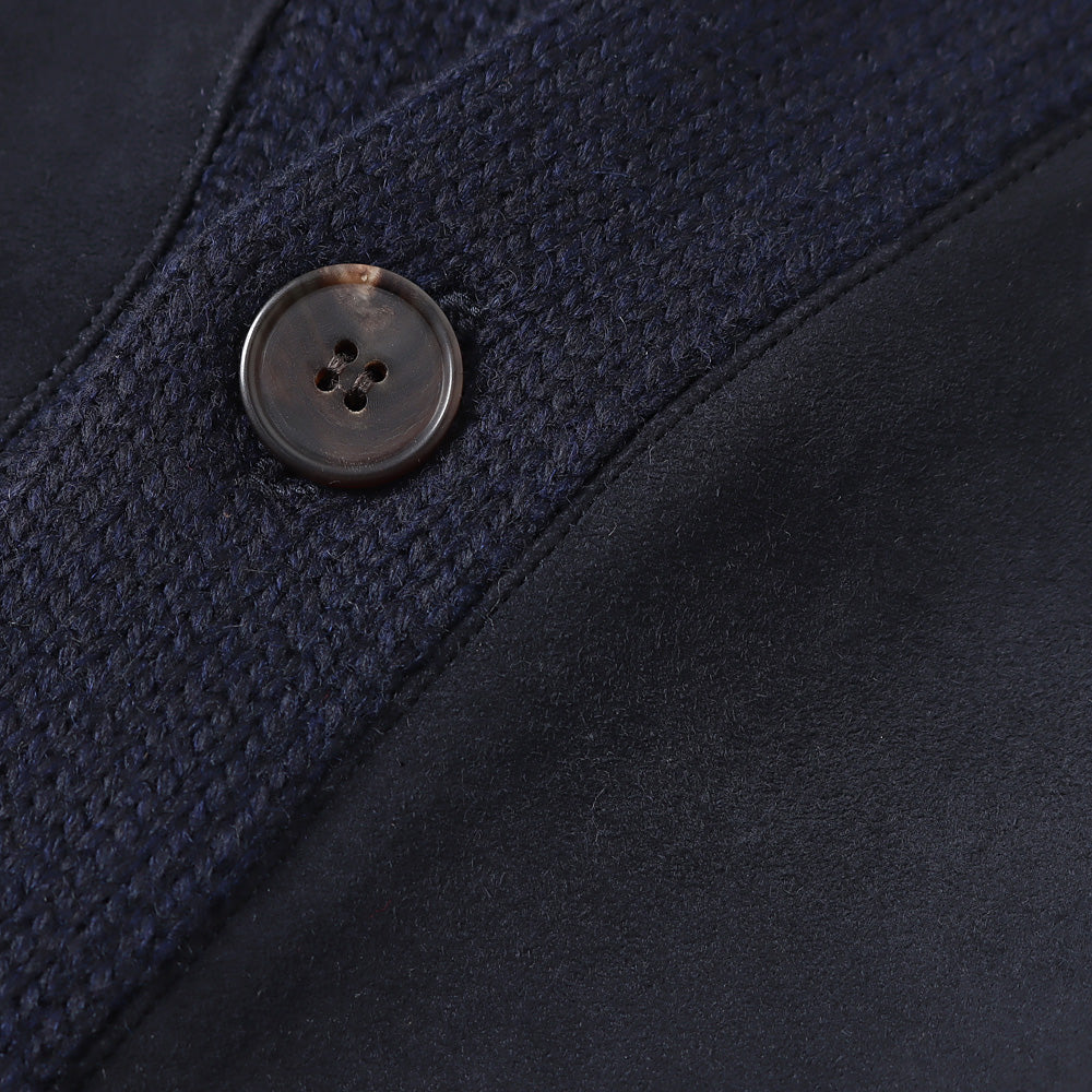 This leather knit combination cardigan has been carefully sewn and shaped.