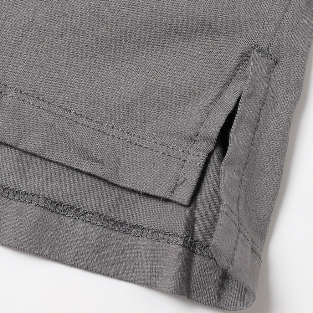 A crew neck, short sleeve cut and sew with a relaxed silhouette made from fabric that has little pilling and an elegant appearance.