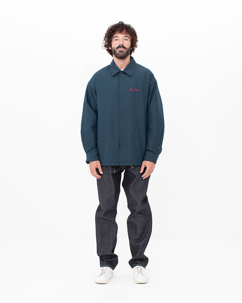 Jacket made of army twill woven with wool and silk at a high density Pressed finish Filled with white goose down Original snap buttons Embroidered "Peerless" detail on chest Hand-embroidered "VISVIM QUALITY PRODUCTS" detail on back