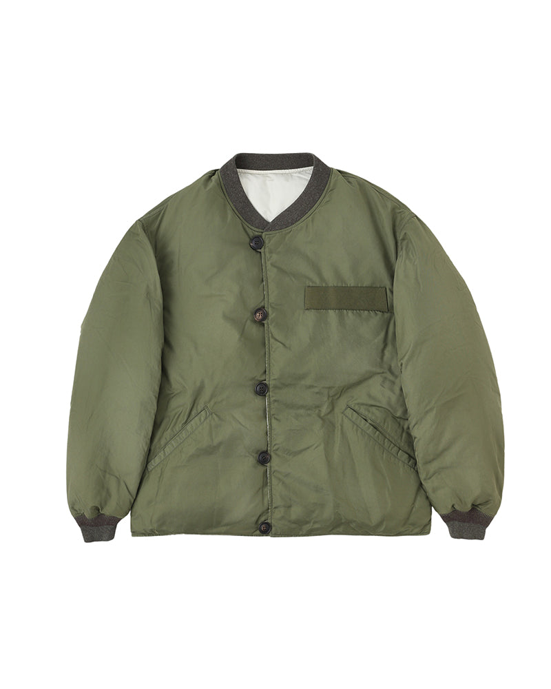 Nylon woven twill jacket Distressed Natural dyeing White goose down filling Original buffalo buttons Original military tape