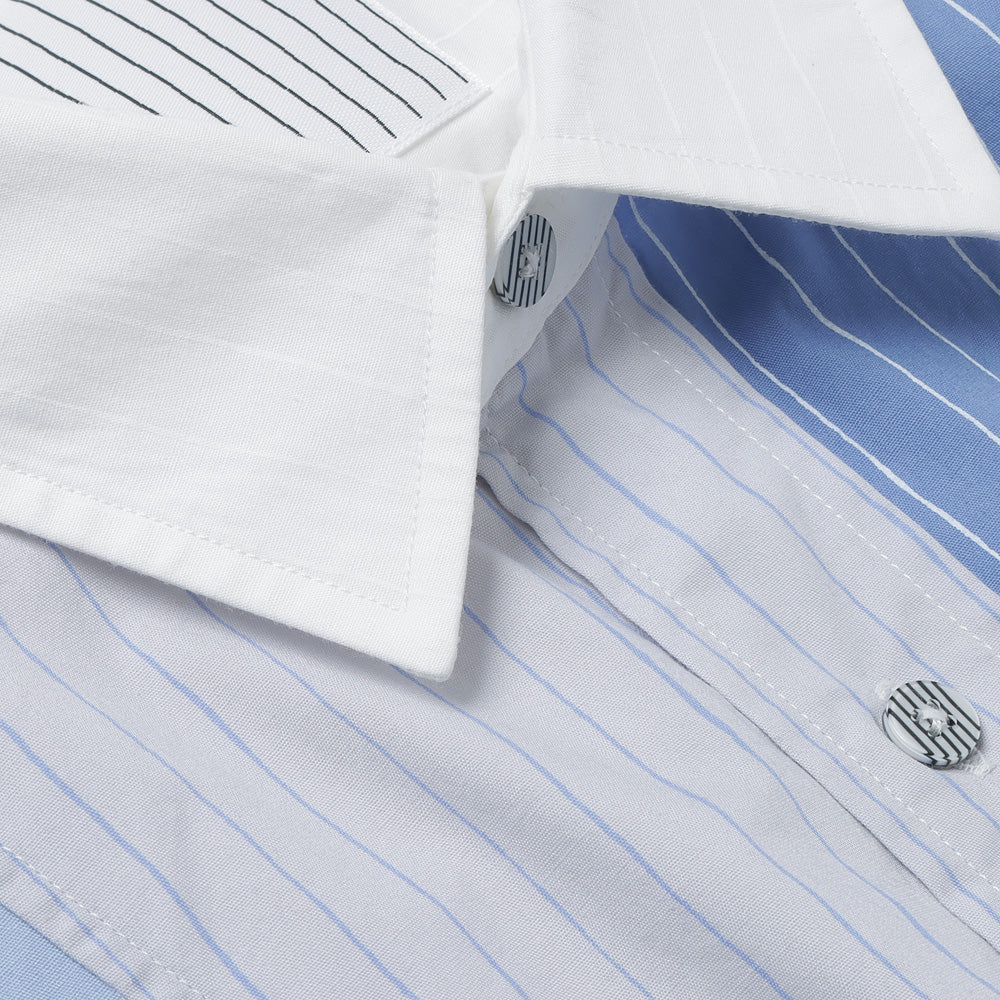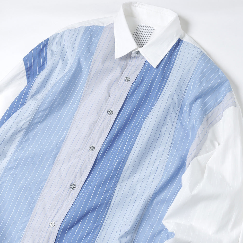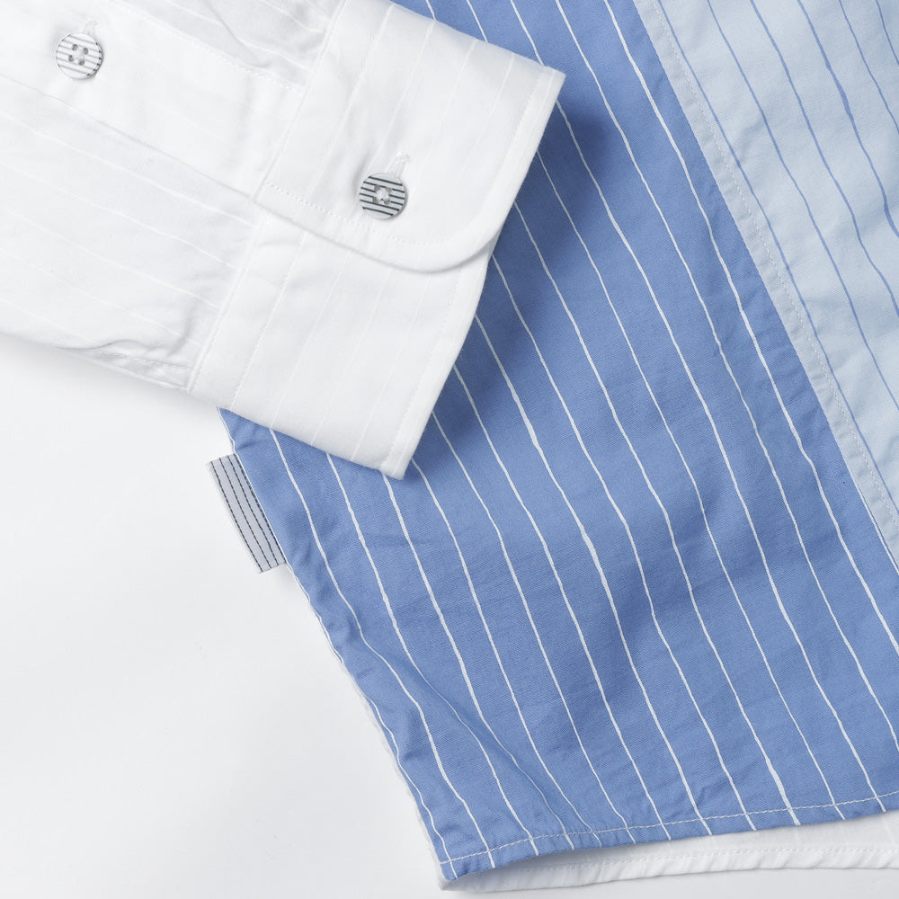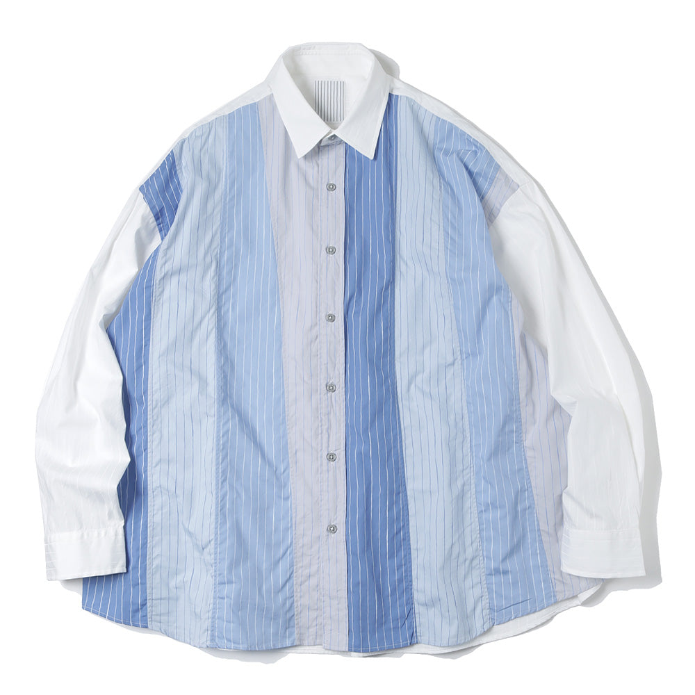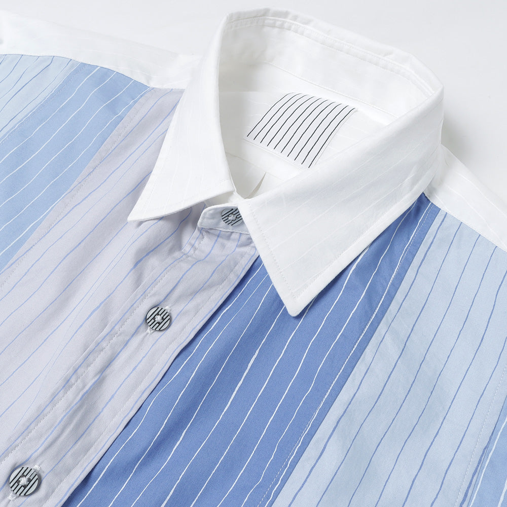 A crazy pattern shirt with a color scheme design combining fabrics used in the SFC SHIRT. The stripe pattern uses hand-drawn stripes, which are also the SFC logo. The material is a high-density woven broad cotton fabric.