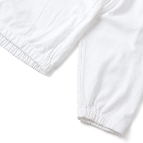Long sleeve T-shirt with elasticated sleeves and hem.